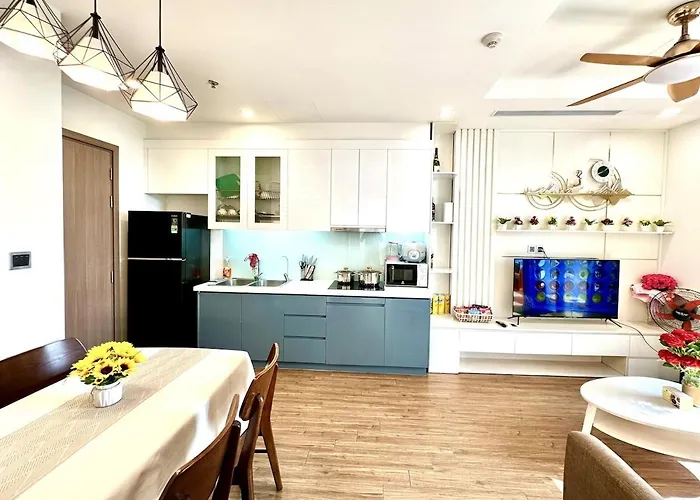 The 1-room Delux Two Bedroom Apartment In Vinhomes Green Bay Near Marriott And Keangnam Hanoi includes a terrace and is located 3.6 km from the VCCA Vincom Centre of Contemporary Art. Along with Wi-Fi and a private parking lot for guests with cars, the 60 m² apartment offers general amenities like currency exchange and a lift.
